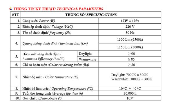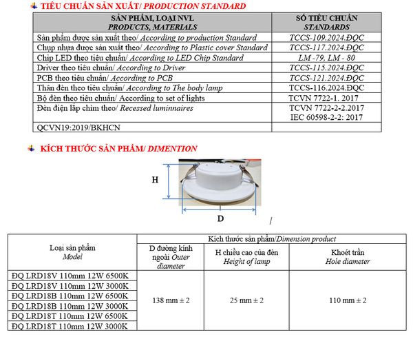 Bộ đèn LED Downlight Điện Quang ĐQ LRD18 (12W, Ø110, bầu kín)