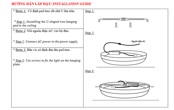 Bước 3: Bắn vis cố định đèn lên pad treo.