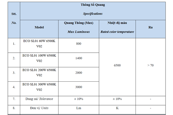 | Nhiệt độ màu (CCT) ± 10% | |