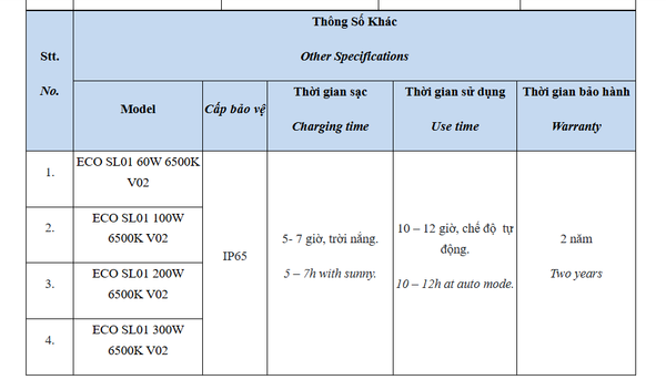 - Đạt tiêu chuẩn chống xâm nhập IP65 đảm bảo hoạt động tốt trong điều kiện thời tiết mưa kéo dài.
