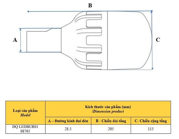 - Đường kính chui đèn: 28.5mm