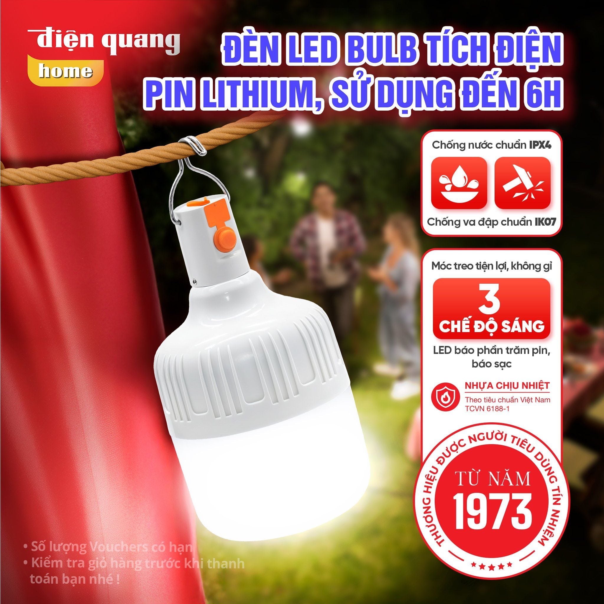 Đèn LED BULB Treo Tích Điện Điện Quang ĐQ LEDBUR01 (Ánh sáng trắng)