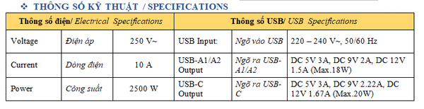 Cắm được hầu hết các loại ổ cắm trên thị trường: UK, EU, USA, Universal,....