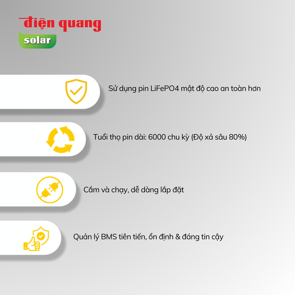 | Tuổi thọ chu kỳ | 6000 chu kỳ (@80% DoD) | 6000 chu kỳ (@80% DoD) |