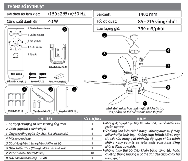 - Điều khiển từ xa: Tiện lợi, dễ dàng sử dụng.