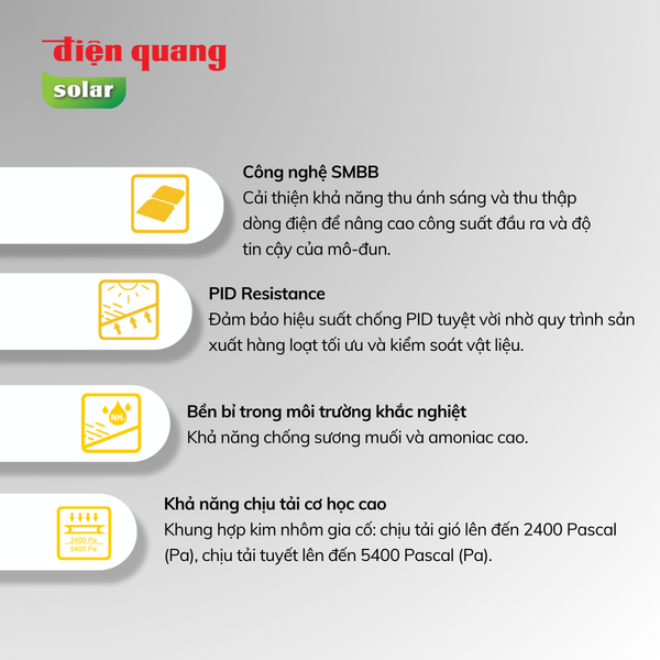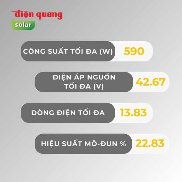 Tấm pin năng lượng mặt trời Điện Quang Austa 590Wp (1 mặt kính) AU590 - 36V- MH