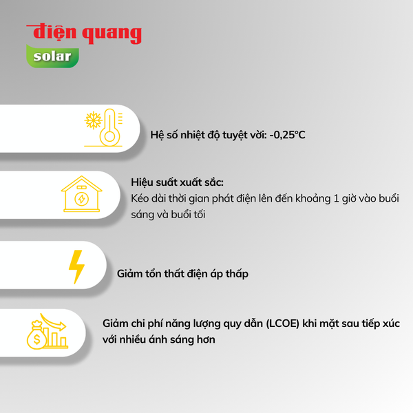 | THÔNG SỐ PHÁT ĐIỆN HAI MẶT (LỢI ÍCH MẶT SAU) | ||||||