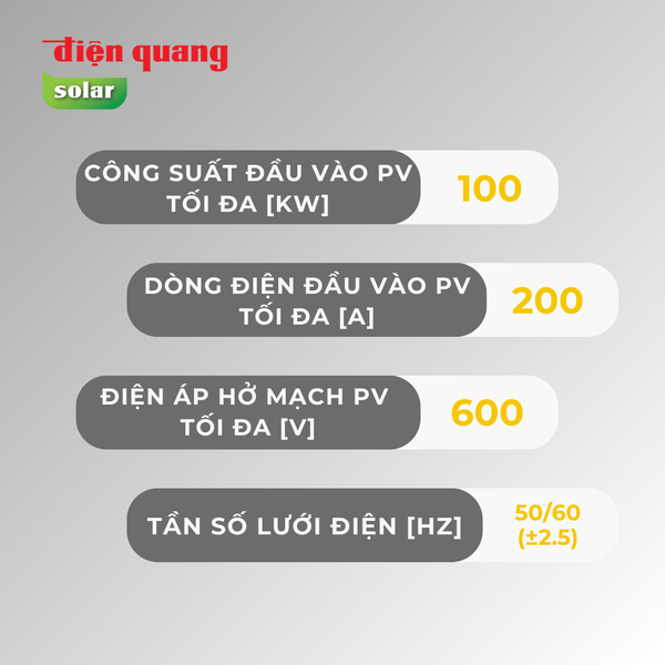 | Công suất đầu vào PV tối đa [kW] | 100 |